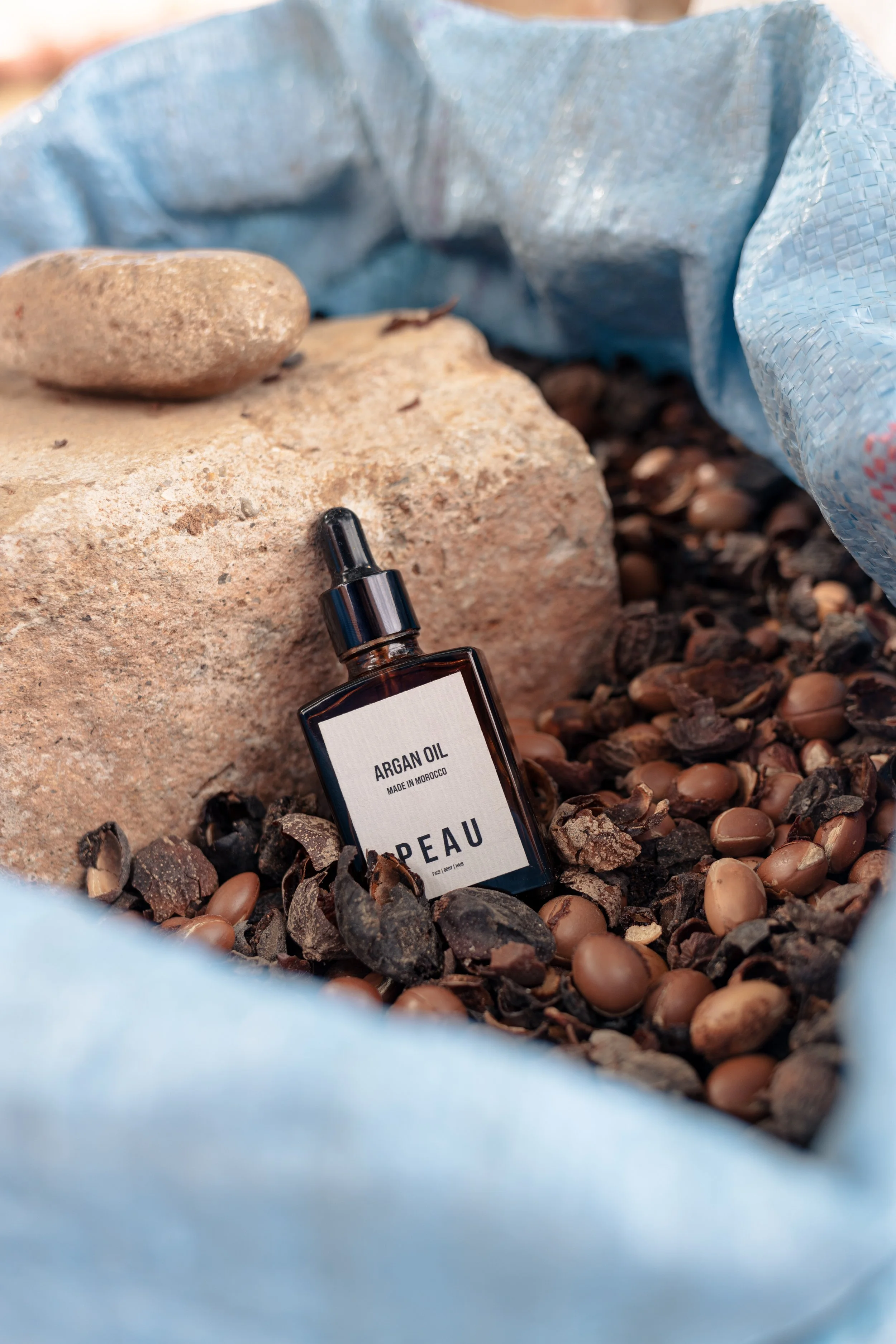 Rinse out and massage Argan oil into hair or skin.